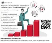 30 ноября 2022 года в 14.00 (омское время) Банк России приглашает на семинар "Финансовые инструменты для развития бизнеса. Возможности привлечения финансирования".