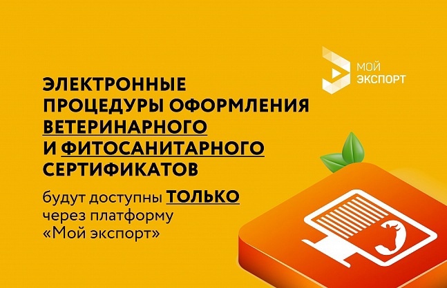 С 3 июля 2023 г. заявления в электронной форме на оформление фитосанитарного, в том числе реэкспортного, сертификата и с 1 сентября 2023 г. заявления в электронной форме на оформление экспортного ветеринарного сертификата и разрешения на вывоз подконтрольной продукции будут подаваться исключительно с использованием платформы "Мой экспорт" (https://myexport.exportcenter.ru/?utm_source=rec&..).
